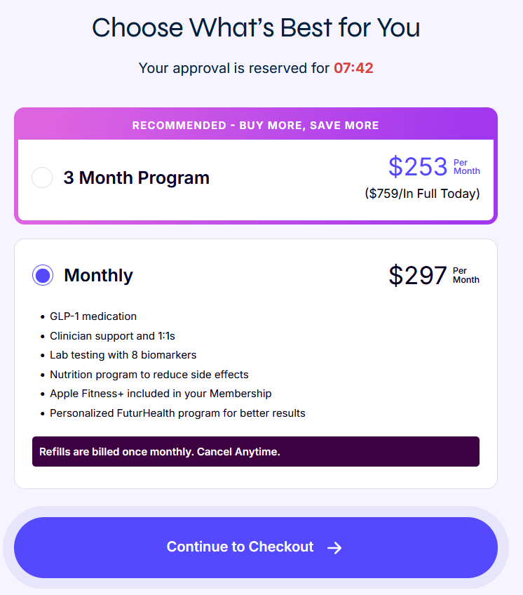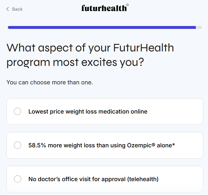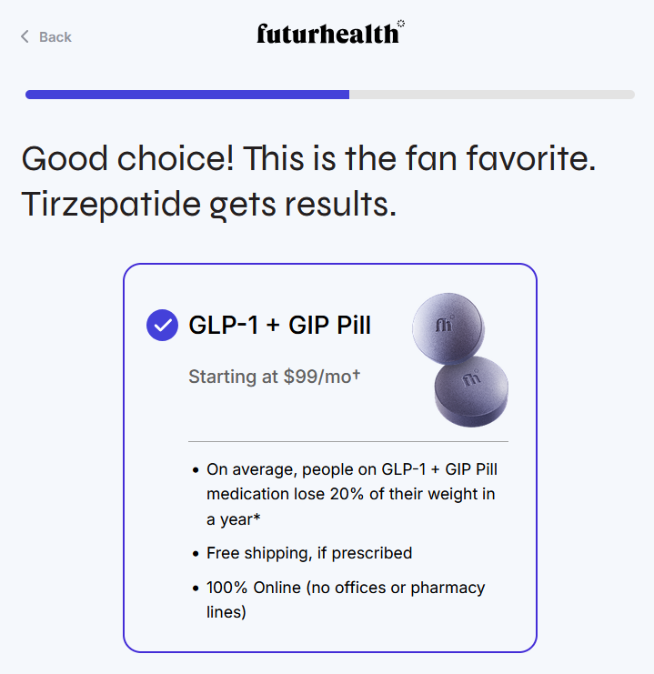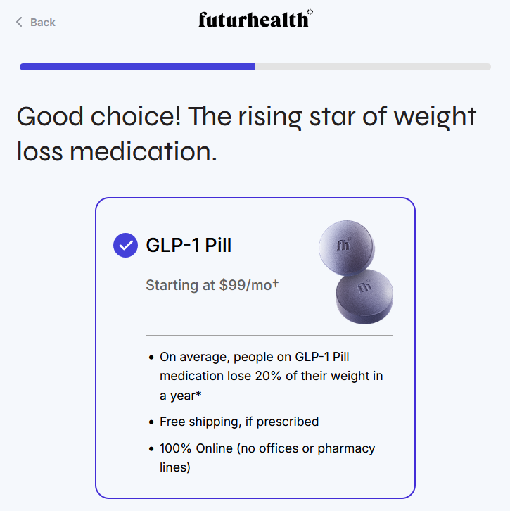 FuturHealth is a telehealth provider focused on helping people achieve sustainable weight loss through medication, coaching, and digital support. At its core, it pairs you with licensed healthcare providers who guide you through starting and maintaining GLP-1 medication (a class that includes semaglutide and tirzepatide) alongside diet and exercise advice.