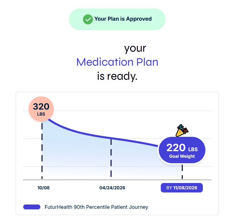 Results may vary based on your starting weight, body mass index, and how closely you follow the program, but large-scale data suggests patients using FuturHealth’s full program lose about 58.5% more weight than those relying on medication alone (retrospective study).