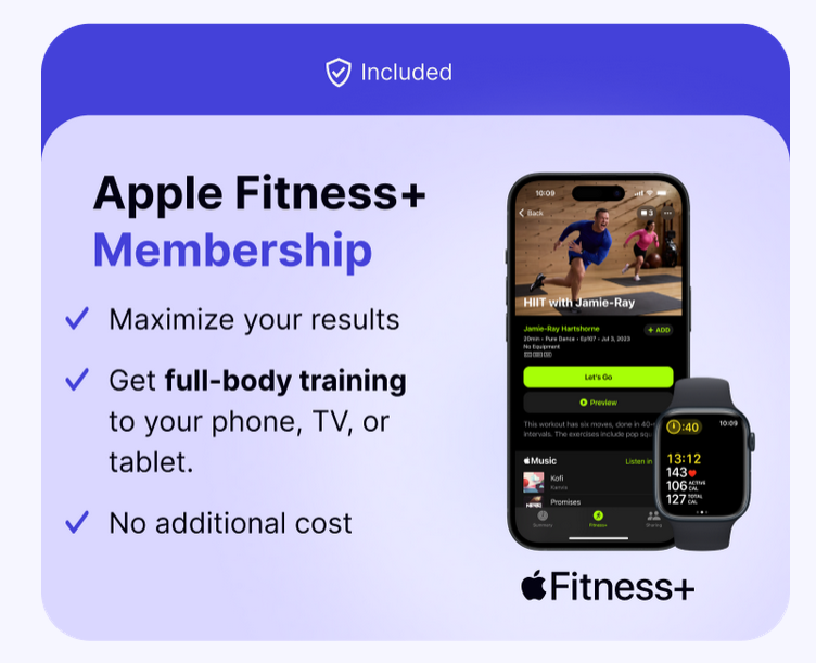 - Apple Fitness+ included in your Membership